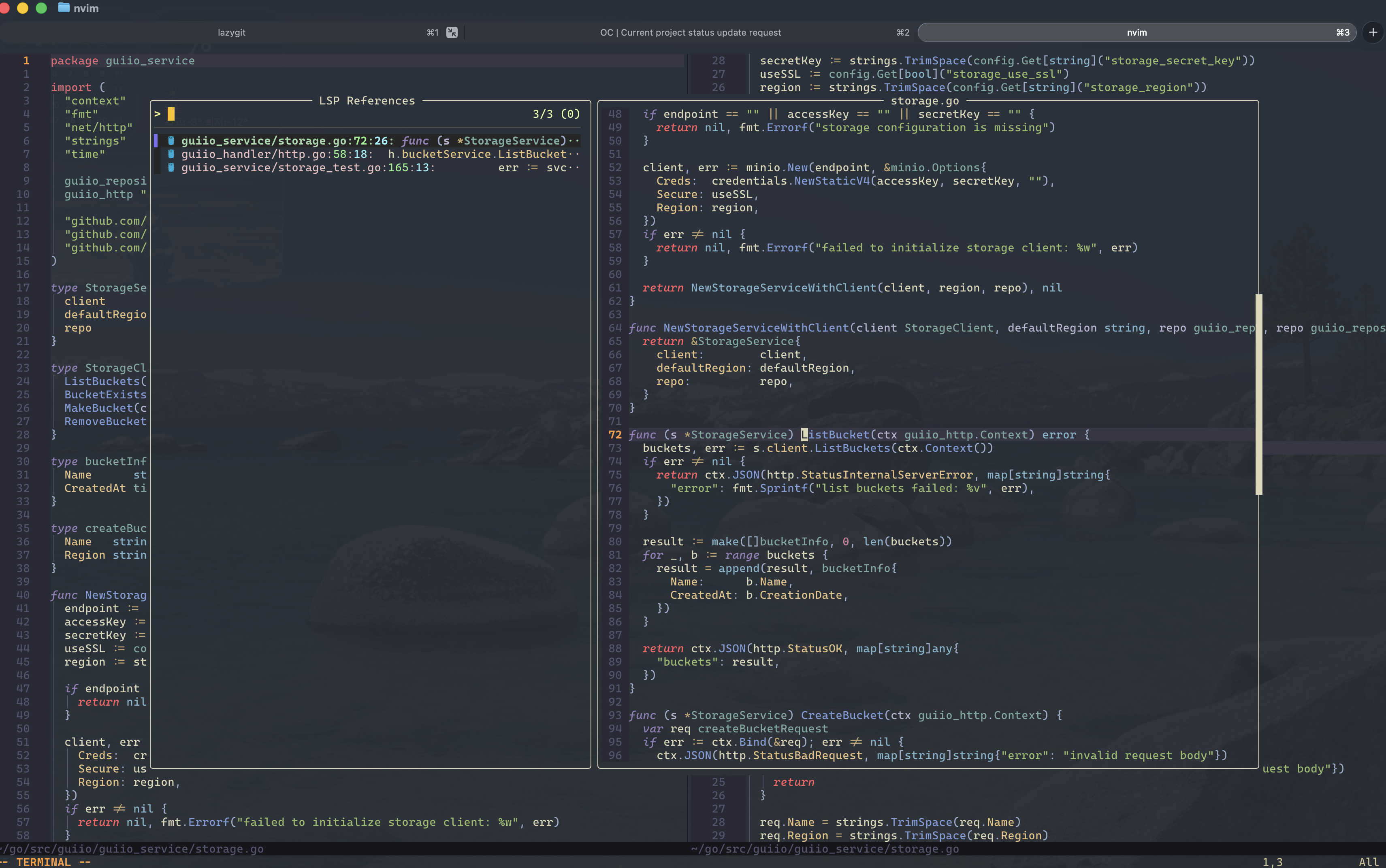 LazyVim 기반의 미니멀한 세팅을 구성했고, fzf-lua를 비롯해 LSP 등을 세팅한 현재의 결과물은 다음과 같다.
