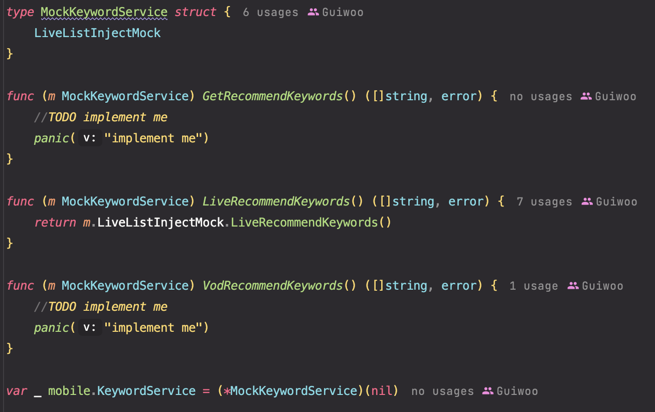 확실히 이번에는 시간적인 여유가 많이 있어 TDD 도 적용했다. 아무래도 기존 프로젝트 에 testify 같은 라이브러리의 접목이 과하다고 생각되어 그냥 일반적으로 interface로 모킹을 적용해 작성했다.