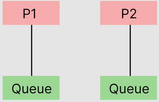 프로세스 1에 대해 T1, 프로세스 2에 대해 T2를 할당한다고 가정해 보자.