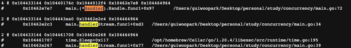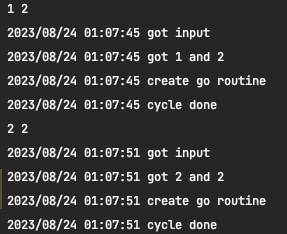 Handler의 Handle 은 내가 의도한 결과이다. 2번의 인풋과 생성이 발생되어 2개의 고 루틴이 생성되어야 한다.
