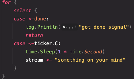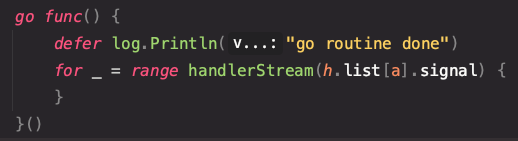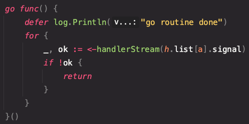 아... 정말 멍청했다. 우측 for 문 안쪽에 보면 handleStream(시그널)에서 채널링 값을 받아와 해당 채널이 닫힌여부에 따라 고 루틴을 종료한다.