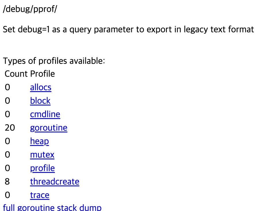 - pprof을 설정한다. 단순하게 import 해주고, pprof으로 접근할 수 있는 포트를 제공해 주면 된다.