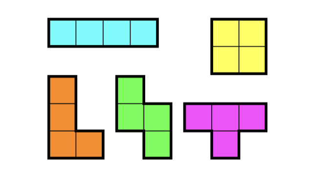 왼쪽에 보이는 모양을 맵에다가 놓았을 때 최댓값을 구해야 한다. 단 주어지는 저 도형들은 회전, 대칭 등이 가능하다.