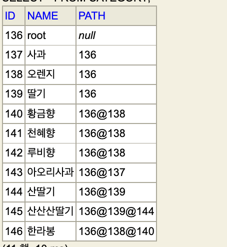 클로저 => 두 개의 테이블을 운용해 트리의 모든 경로를 기록하기 때문에 조회가 무척 쉬웠다. 심지어 열거형, 중첩 모델의 문제인 참조의 정합성 문제도 해결해주는 완벽한 듯해 보였으나. 계층 구조를 사용하는 데 있어 많은 저장공간을 사용하는 아쉬운 점이 존재한다.